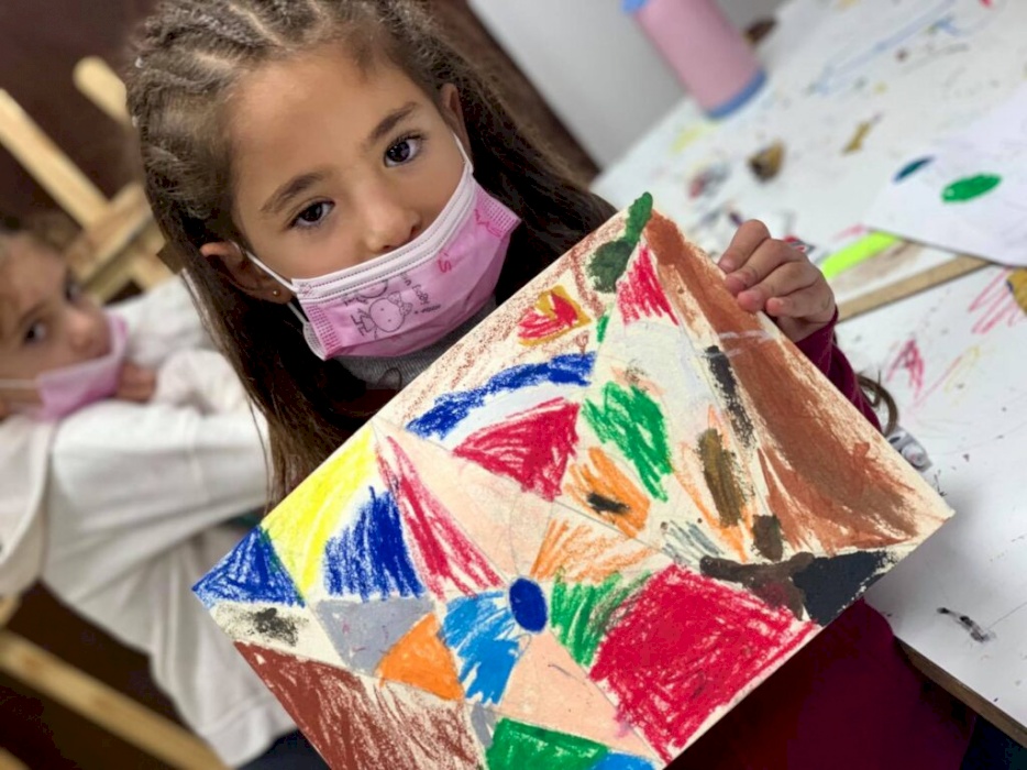 استخدام الخطوط والأشكال الهندسية والالوان من قبل الاطفال لتكوين عمل ابداعي ينمي الخيال
