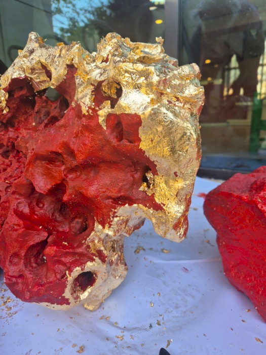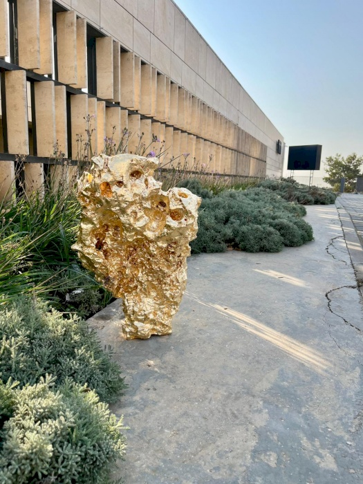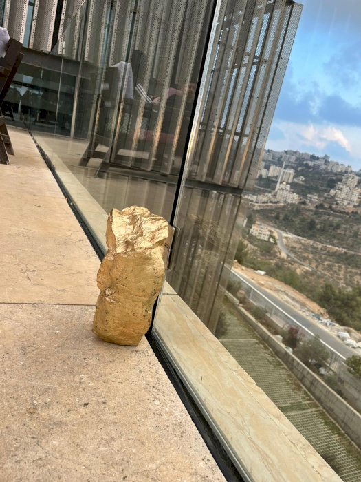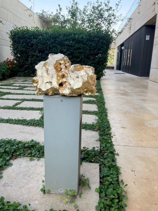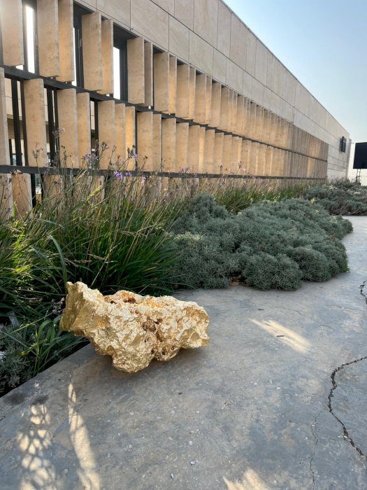 من خلال تذهيب هذه الأحجار الصامتة المنسية من عالمنا، على يد مجموعة من الفنانات والفنانين الفلسطينيين الشباب، تدعوكم هذه التركيبة الفنية إلى إدراك ما هو غير مرئي، وإعادة النظر فيما نغفل عنه غالبًا. متناثرة على الشرفة، تنفصل الأحجار عن أصولها الجيولوجية لتدخل حياة رمزية جديدة، تتلألأ فيها لا ككنوز فحسب، بل كتذكير بمعنى أعمق. تبدأ القيمة بالانتباه، وتضيء عندما نختار أن نراها.